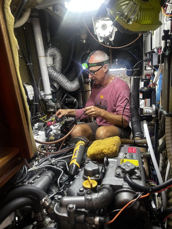 Guillermo also got the team to fill the corrosion with Belzona - a product we hadn't heard of before but on investigating, we might try and get hold of. In addition to this the injectors we also reinstalled, after a thorough cleaning and servicing and a start was made on reinstalling the prop shaft. Lastly, we finalized what we needed to complete our sail sunshade and had Jaimie, our awesome sail maker, do the final adjustments
