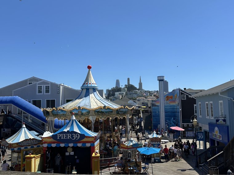 Then it was into full touristing mode as we walked around San Francisco getting our bearings. After walking along with waterfront we ended up in the ulitmate tourist trap - Pier 39 we're we both walked around gawking at the amount of touristy tat on offer! We also had to go and see the 'famous sea lions' of pier 39 - they were a hoot - if you want to see and hear them too then here is the live webcam link . Petty we can't share the smell too!